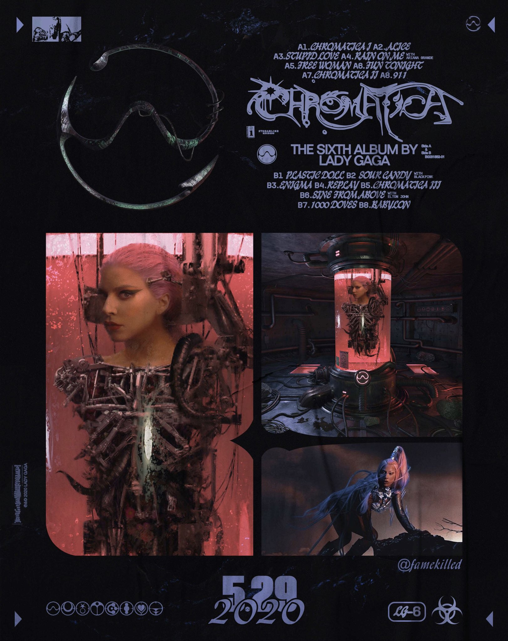 @FAMEKILLED is no stranger to the world of Stan Twitter. A self-professed stan themselves, the account has largely been known for its Gaga-related content and impressive portfolio of self-made cover art, re-designs and more. Pop Crave was first made aware of the page when Grimes shared one of @FAMEKILLED’s designs for ‘Chromatica’ – at that time known as #LG6 – on her Instagram back in September 2019.